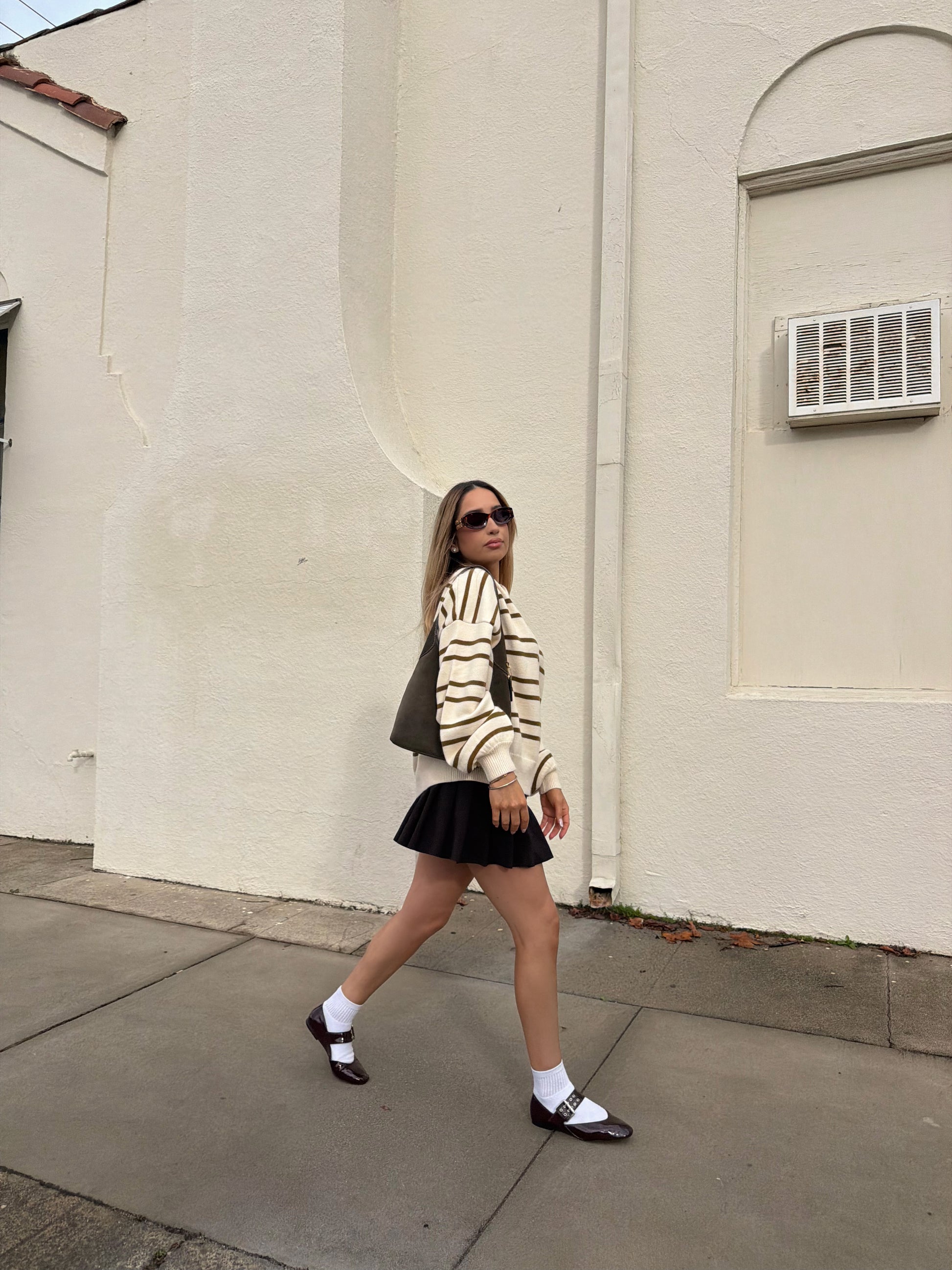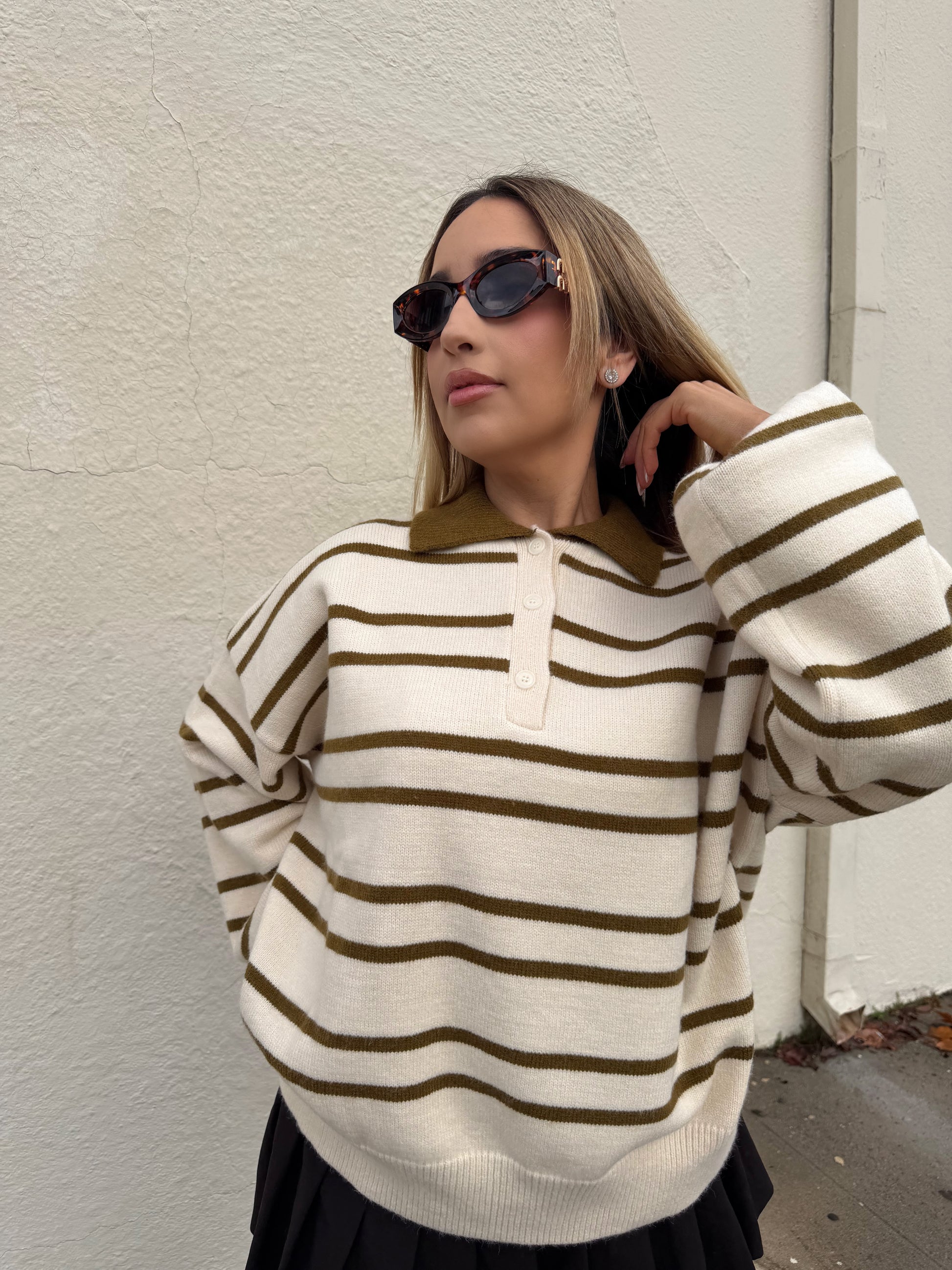 The Noel Pullover Sweater is an oversized knitted sweater that combines a cute and trendy style with the comfort of a cozy knit. With its striped design, this sweater is perfect for adding a touch of charm to any outfit. Stay warm and stylish with this must-have piece.